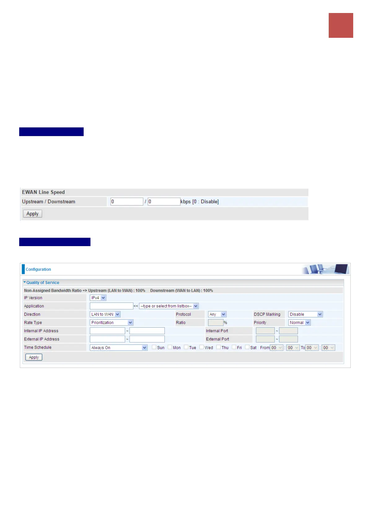 QoS helps you to control the data upload traffic of each application from LAN (Ethernet) to WAN