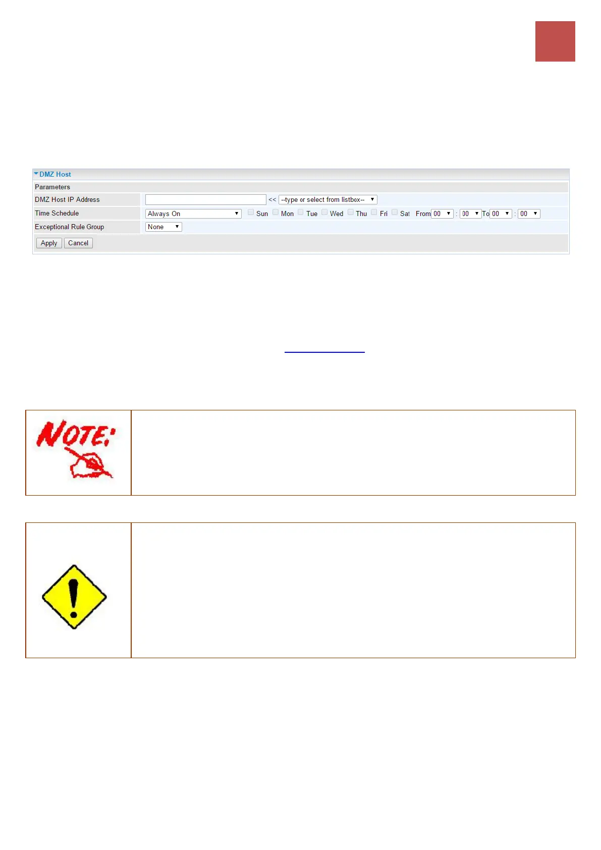 DMZ Host IP Address: Enter the IP Address of a host you want it to be a DMZ host. Select from the