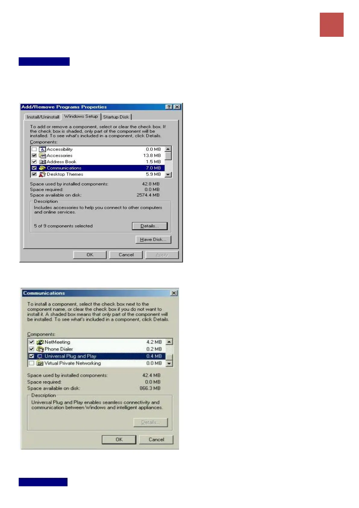 Step 2: Click on the Windows Setup tab and select Communication in the Components selection box.