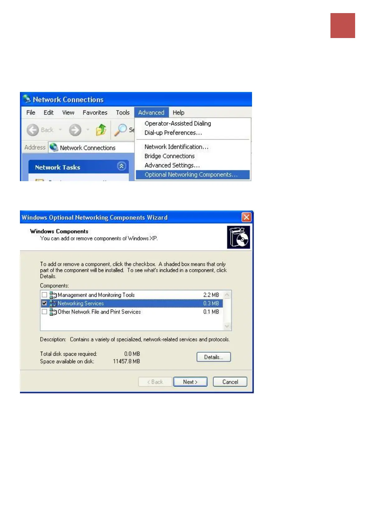 Step 6: Click OK to go back to the Windows Optional Networking Component Wizard window and