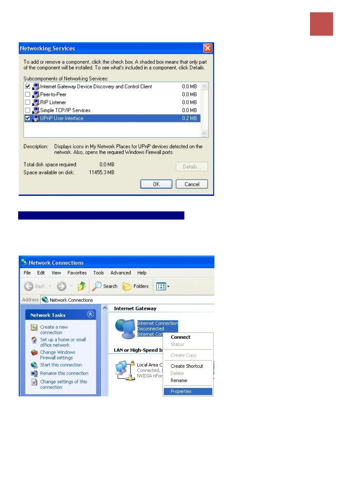 Advanced Setup – UPnP (Example)