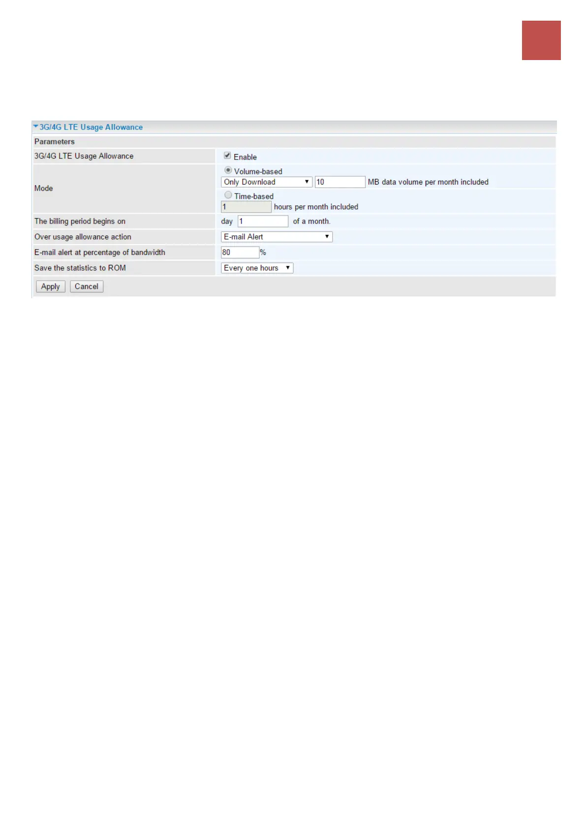 Advanced Setup – Management (3G/4G LTE Usage Allowance)