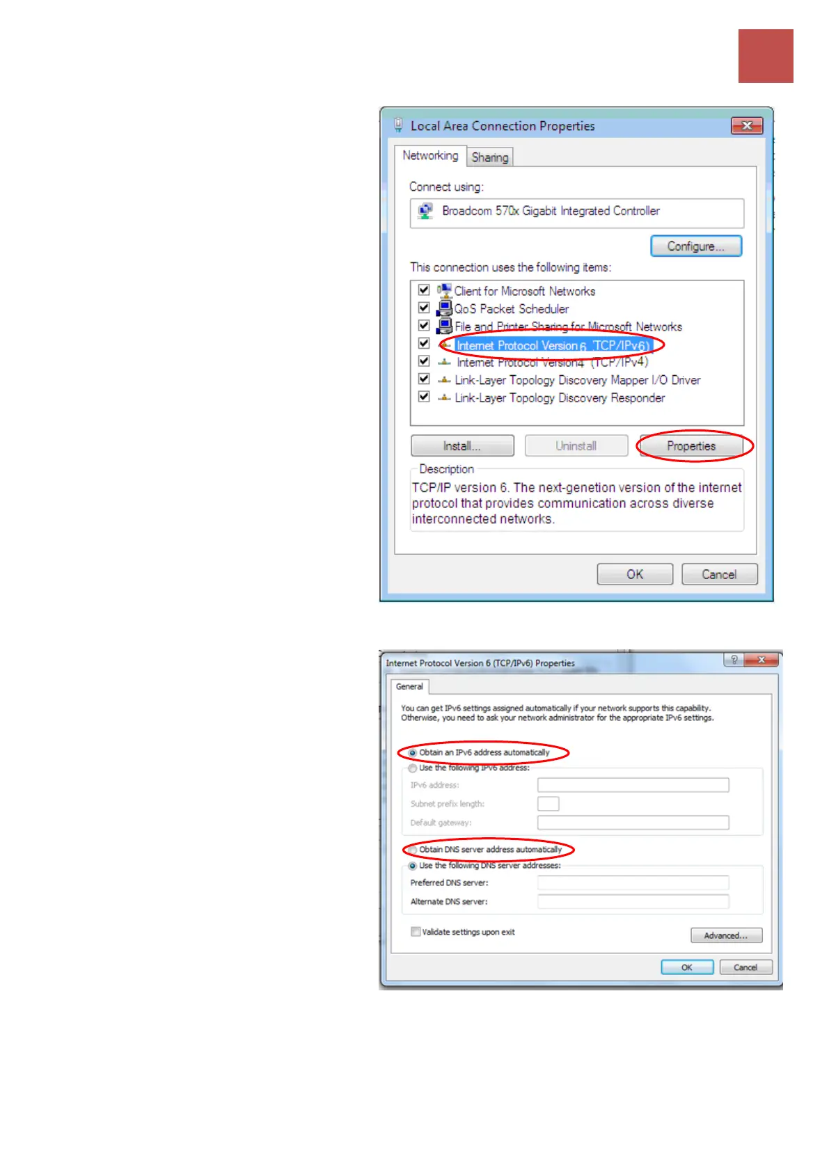 6. In the TCP/IPv6 properties window,