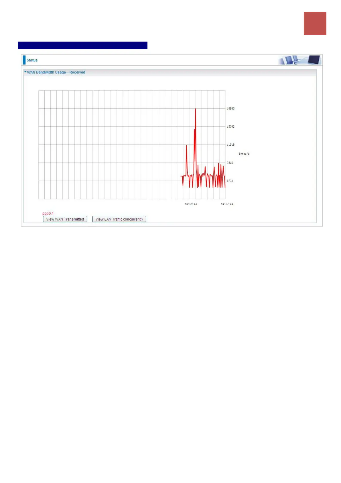 Click View LAN Traffic concurrently to monitor both the LAN and WAN data traffics concurrently. A