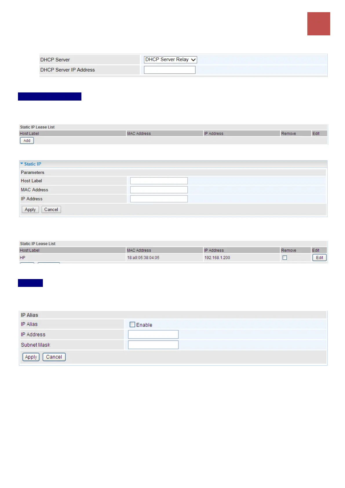 Enter a LAN device’s MAC Address, desired IP Address, and then click Apply to confirm the settings.