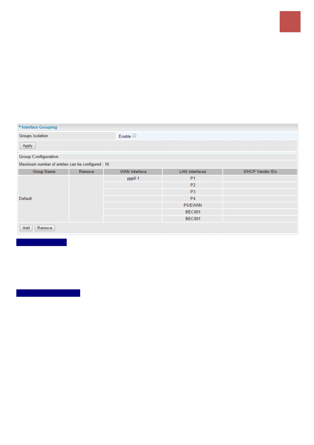 groups with appropriate LAN and WAN interfaces using the Add button.
