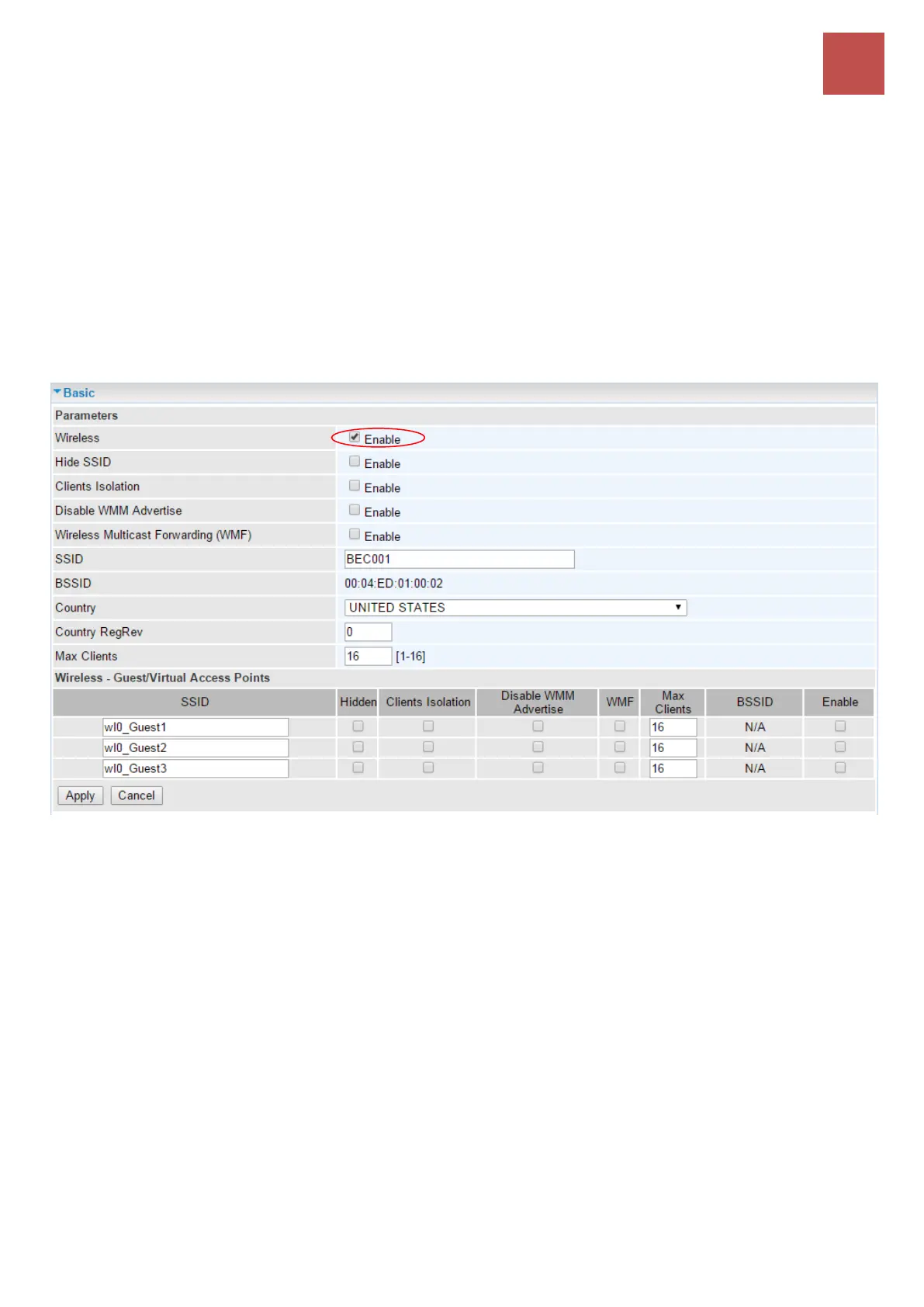 Wireless multicast Forwarding (WMF): check to enable or disable wireless multicast forwarding.