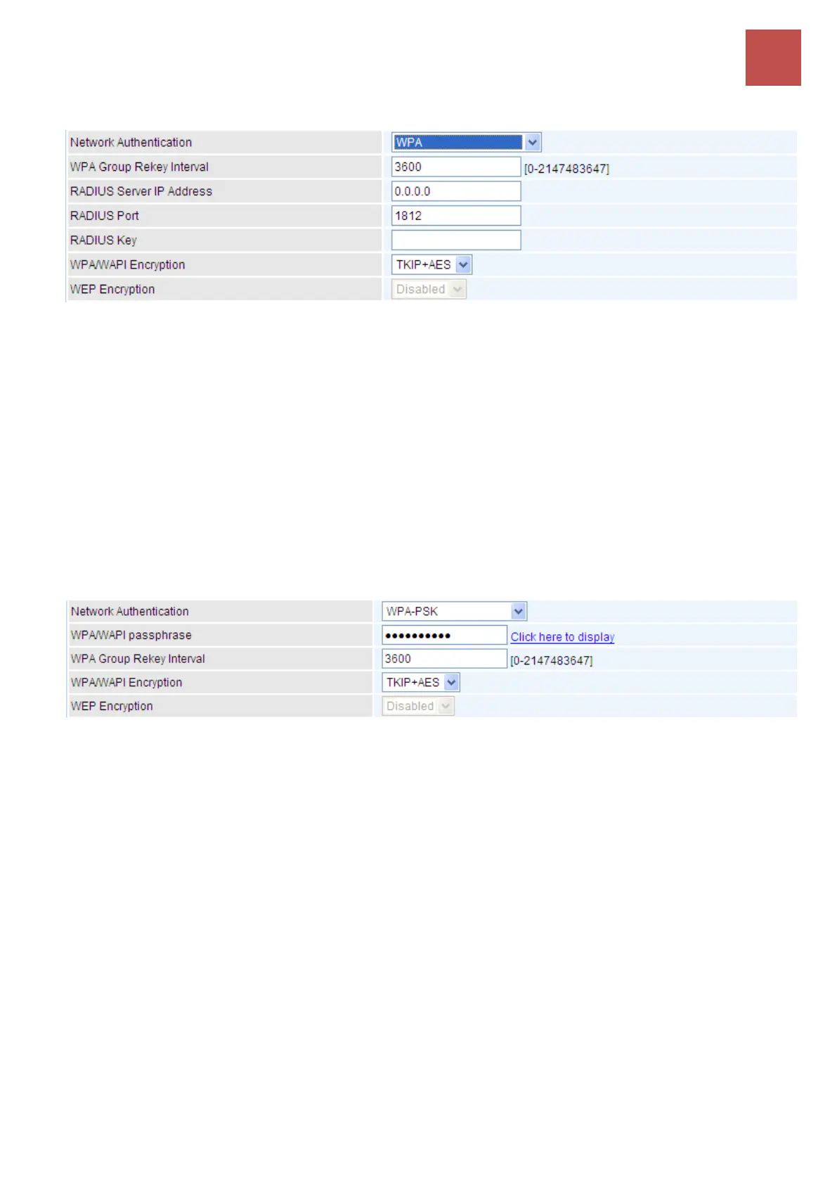 WPA/WAPI passphrase: Enter the WPA.WAPI passphrase; you can click here to display to view