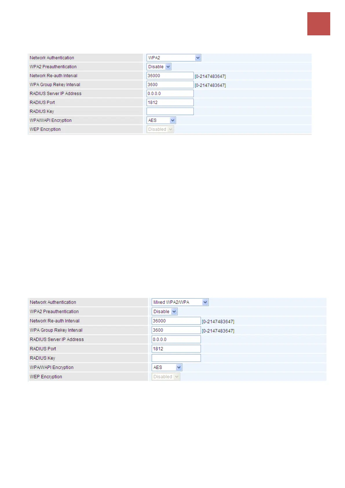Network Re-auth Interval: the interval for network Re-authentication. The unit is second.