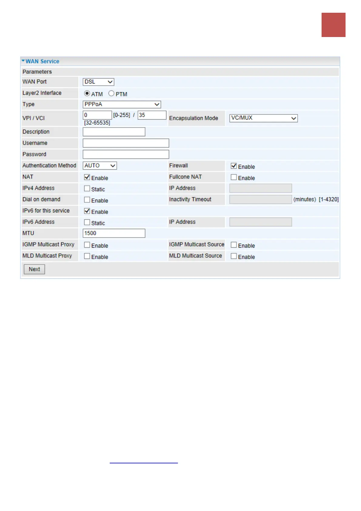 Authentication Method: Default is set to Auto. Or else your ISP will advise you the appropriate