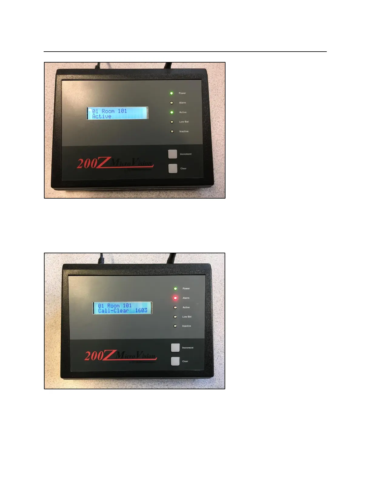 “Call-Clear” (see above). When this happens, press the Clear button. The alarm will clear from