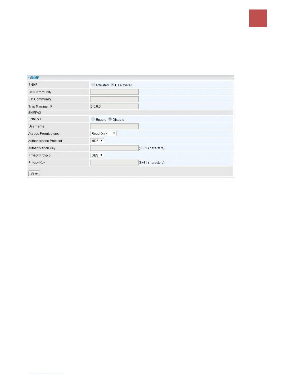 Authentication Protocol: Select the authentication protocol, MD5 and SHA. SNMP agent can