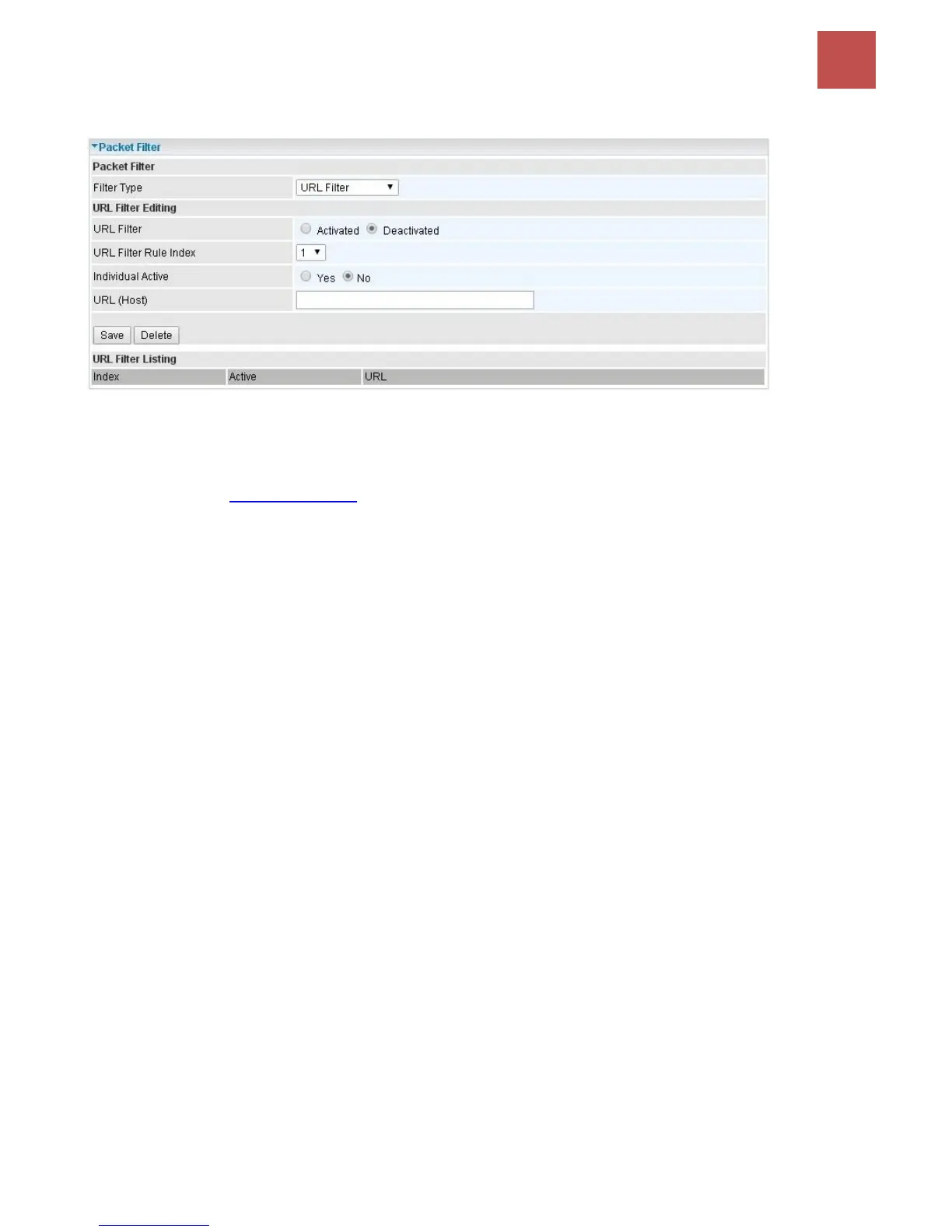 prohibit access to www.yahoo.com, please first press Activated in “URL Filter” field, and also Yes in