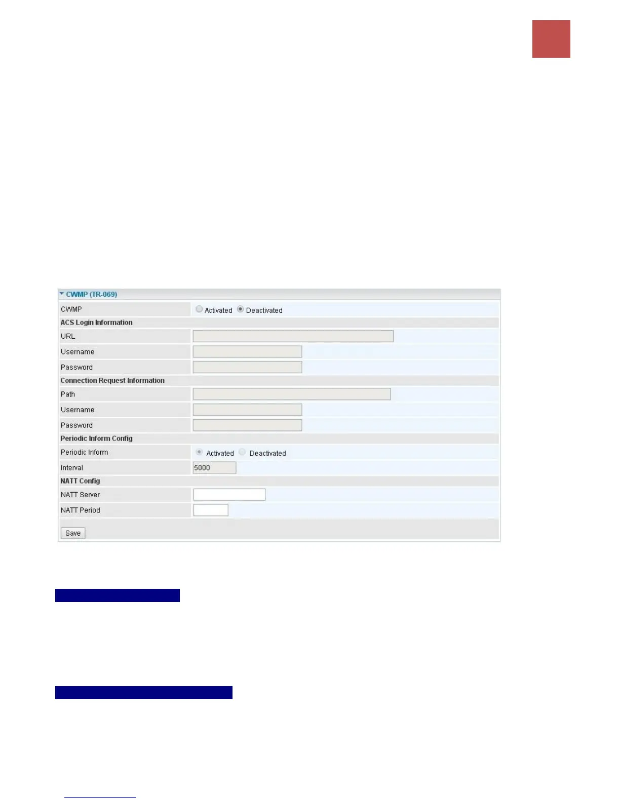 Password: Password used to authenticate an ACS making a Connection Request to the CPE.