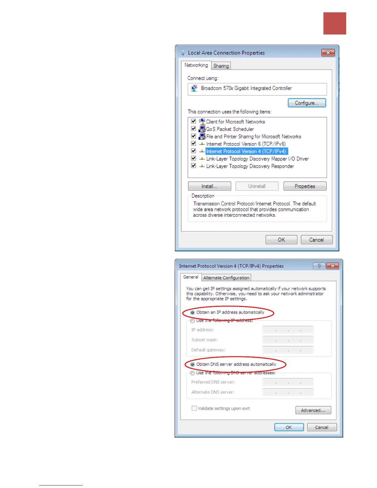 select the Obtain an IP address