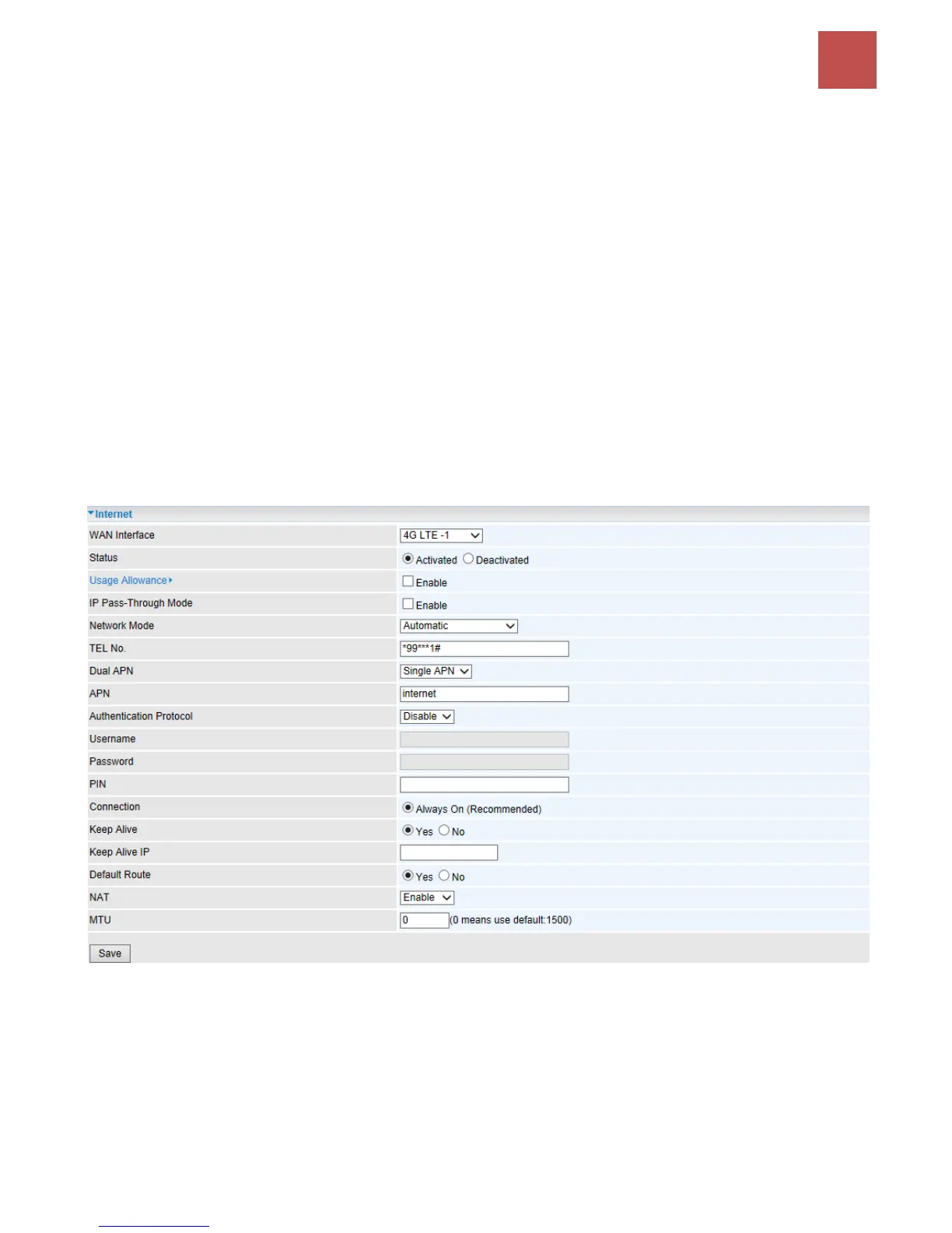 Status: Choose Activated to enable the 3G/4G-LTE connection.