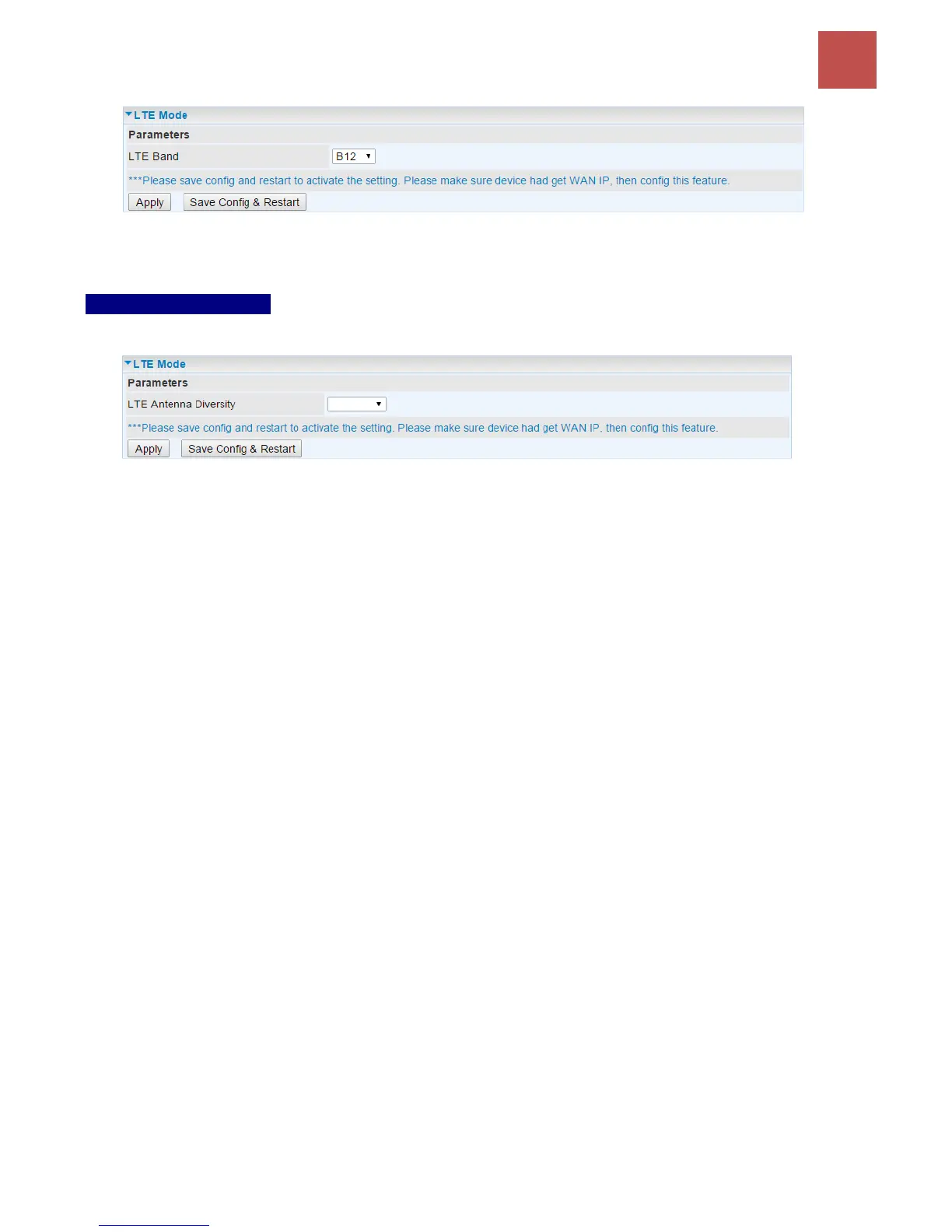 LTE Antenna Diversity *: When enabled, the auxiliary antenna will be activated. With disabled, only