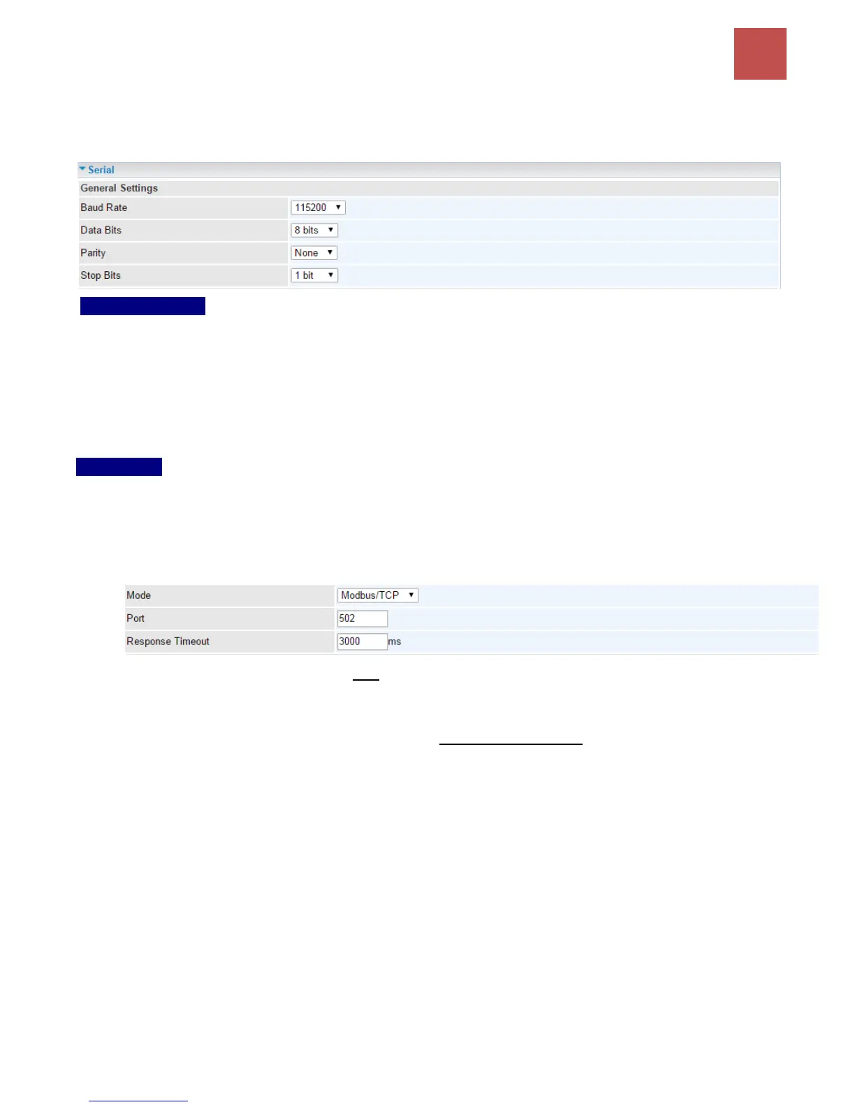 Mode: Select a mode among Disable, Modbus/TCP, and Serial TCP
