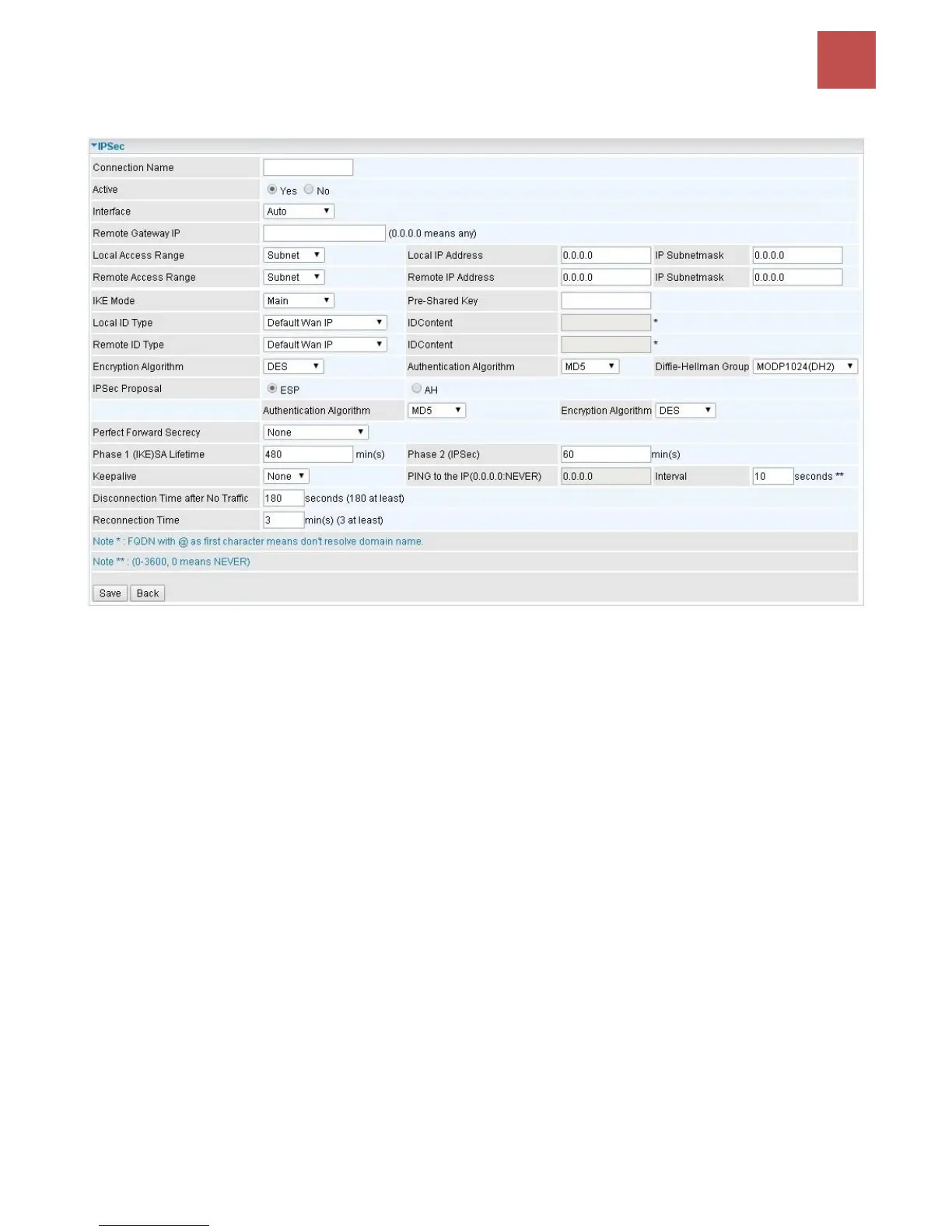 Remote Gateway IP: The WAN IP address of the remote VPN gateway that is to be connected,