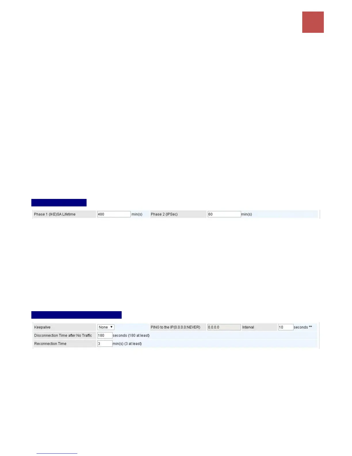 SA Lifetime: Specify the number of minutes that a Security Association (SA) will stay active before