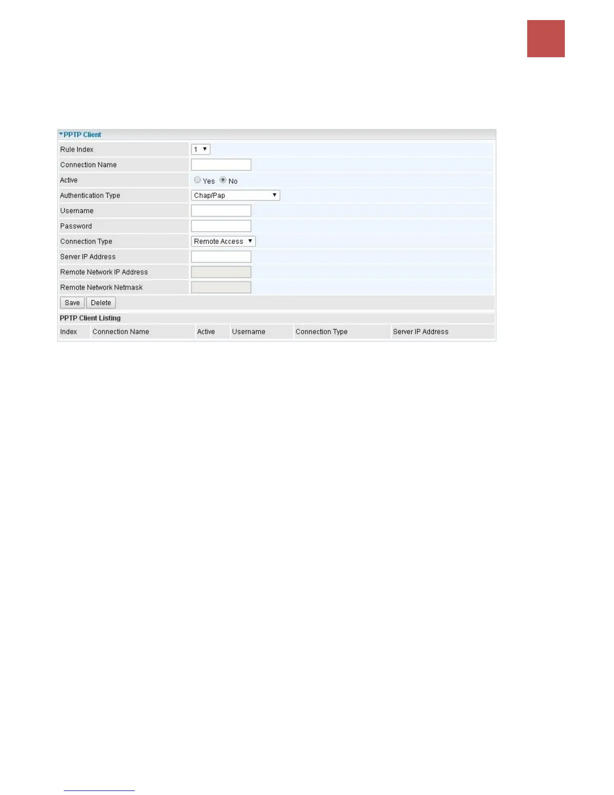 Rule Index: The numeric rule indicator for PPTP client. The maximum entry is up to 4.