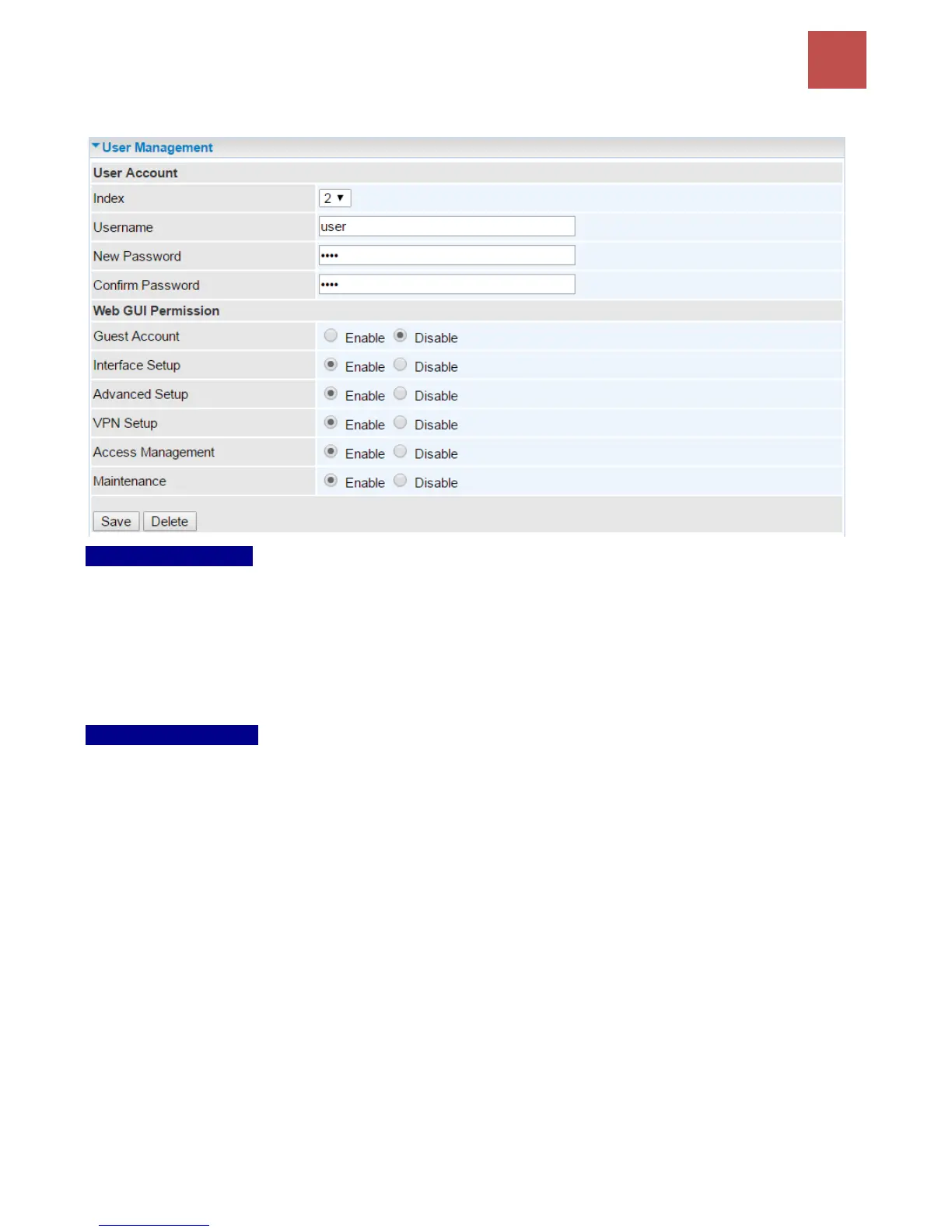 Interface Setup / Advanced Setup / VPN Setup / Access Management / Maintenance: Enable to