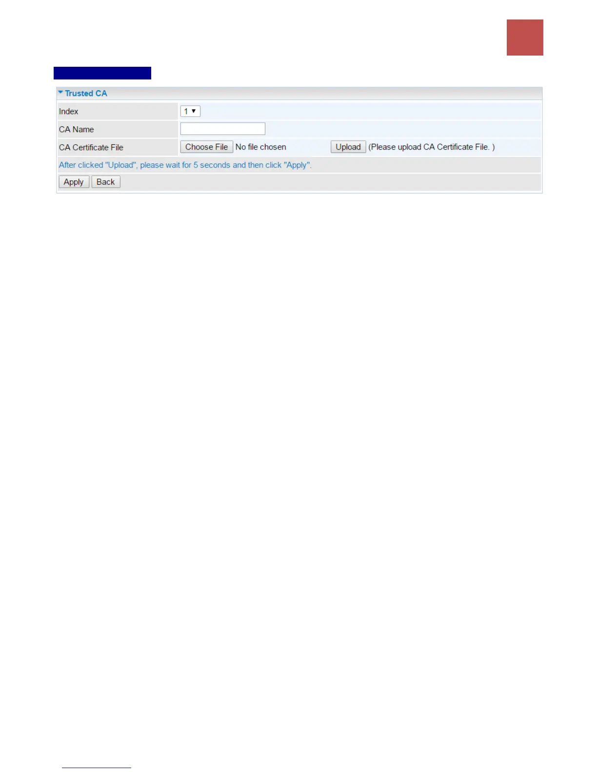 CA Certificate File: Browse to locate the target certificate file on PC before uploading it.