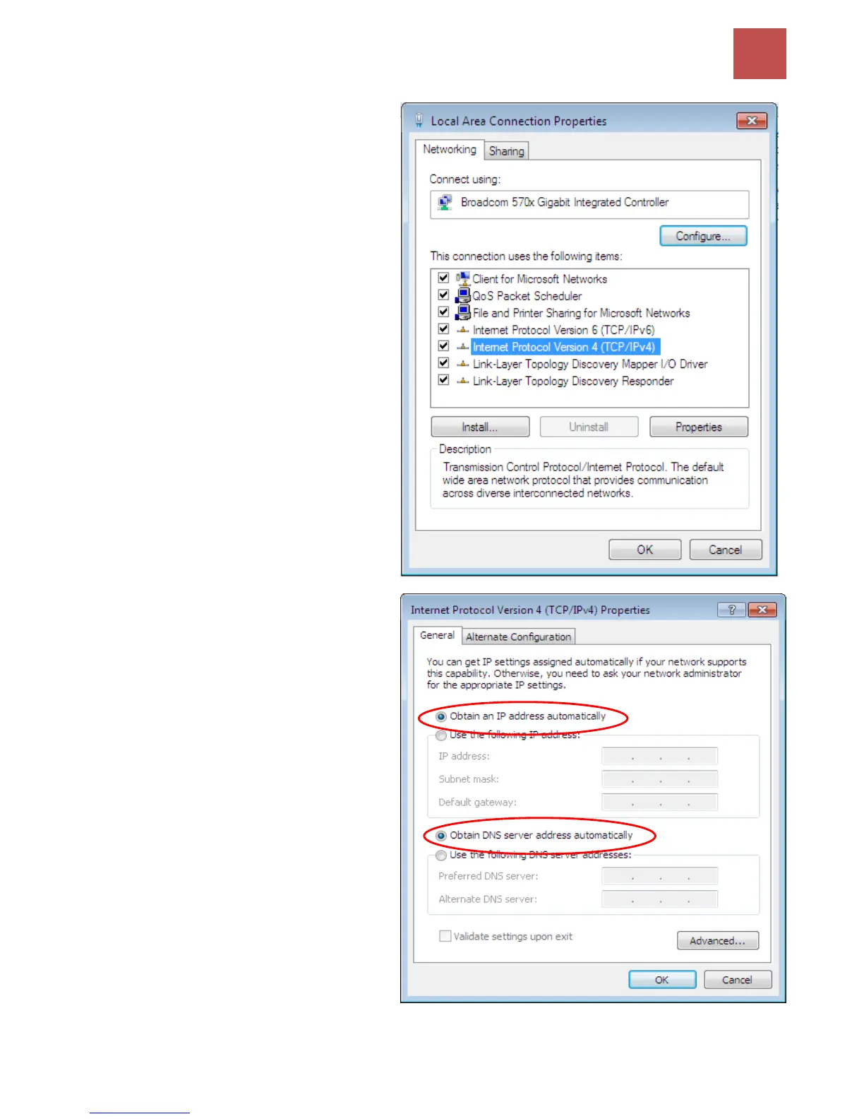 6. In the TCP/IPv4 properties window,