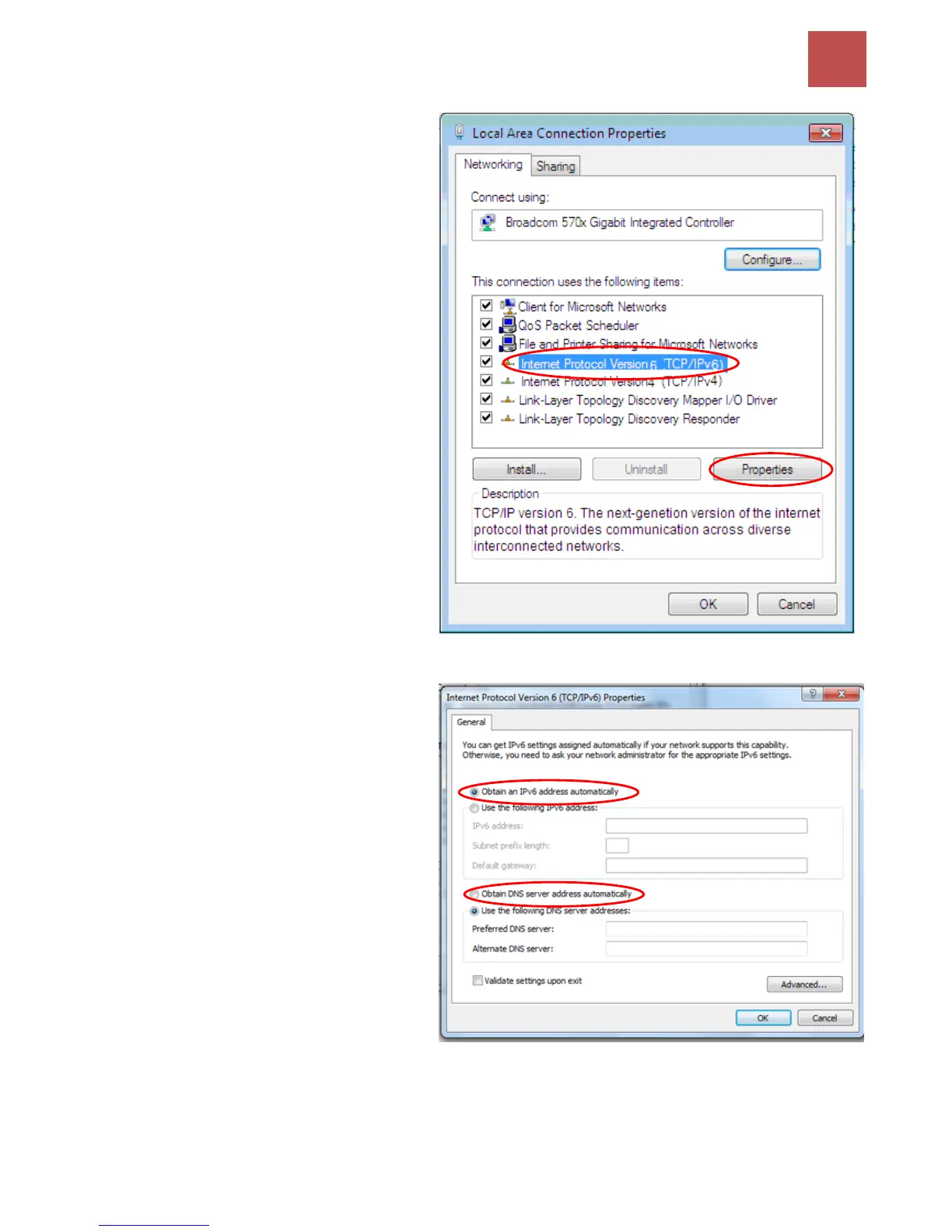6. In the TCP/IPv6 properties window,