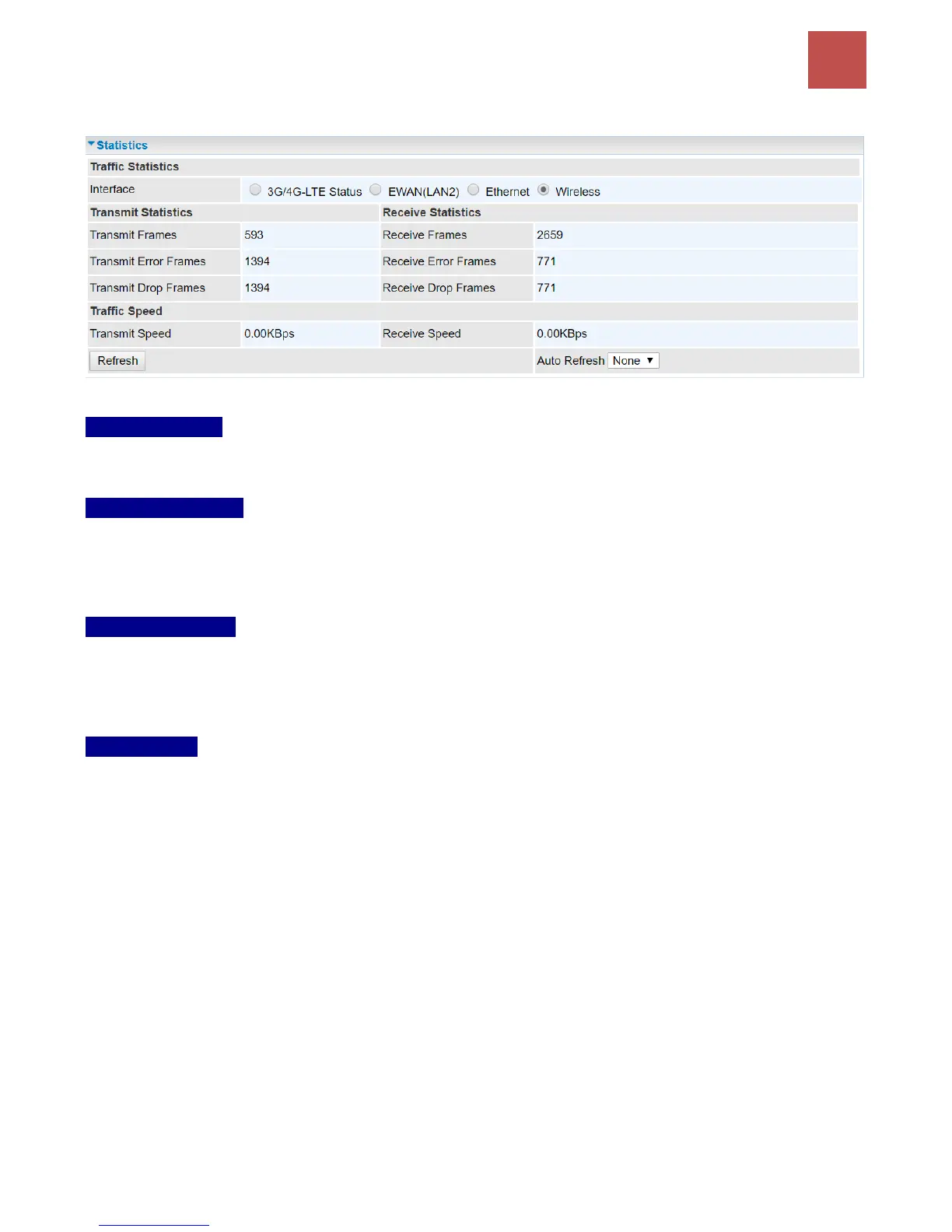 Receive Speed: Display the data rate receives from the Wireless AP.