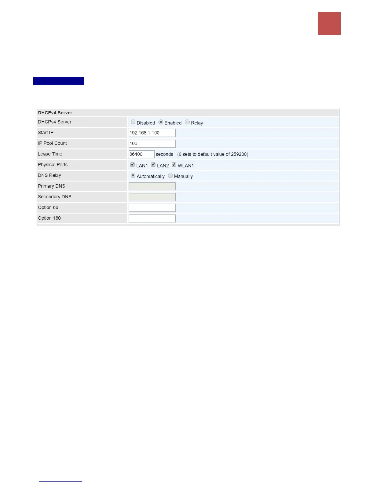 Physical Ports: Select to determine if the DHCPv4 server is applicable to the specific port or ports.