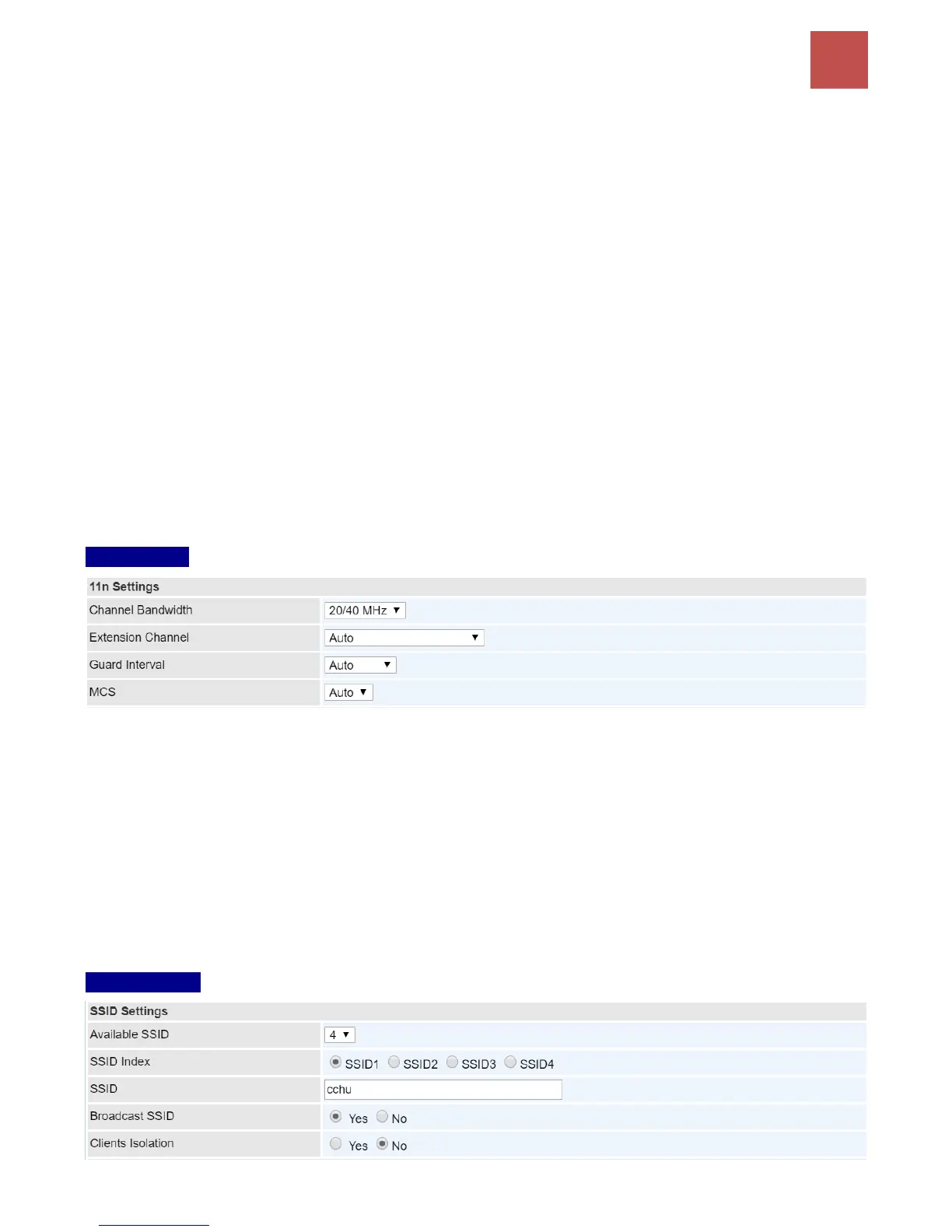 Channel Bandwidth: Select 20 MHz, 40 MHz, or 20/40 MHz for the channel bandwidth. The wider