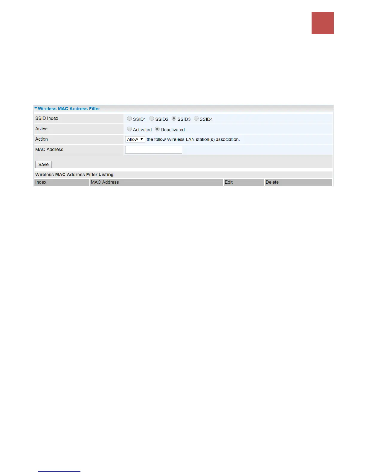 SSID Index: Select the targeted SSID you want the MAC filter rules to apply to.