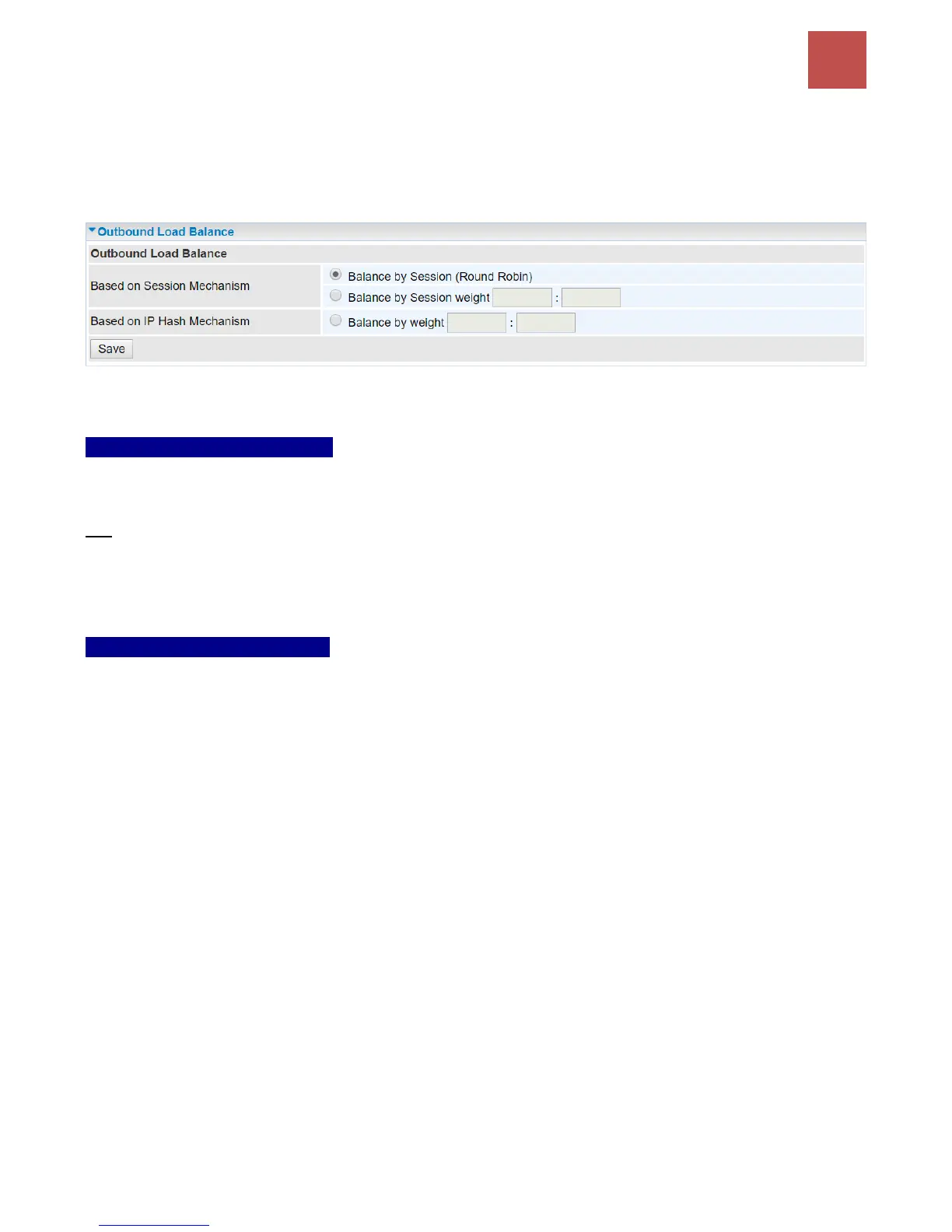 User can distribute outbound traffic based on Session Mechanism or IP Hash Mechanism.