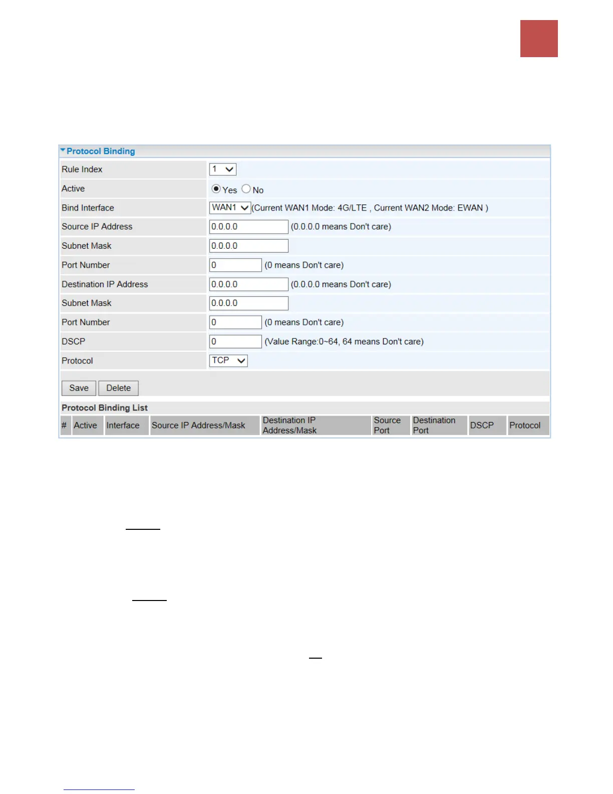 Protocol Binding lets you direct specific traffic to go out from a specific WAN port. Policies determine