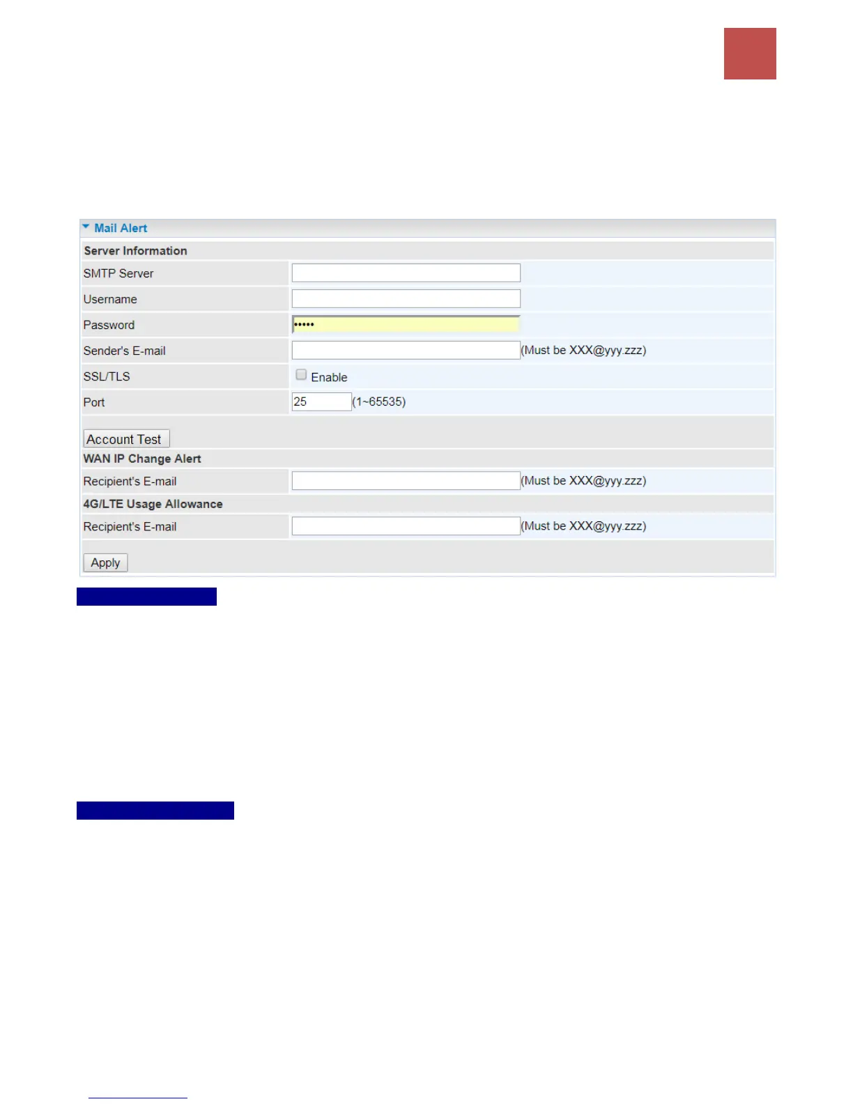 Recipient’s Email (3G/4G-LTE Usage Allowance): Enter a valid e-mail address to receive an alert