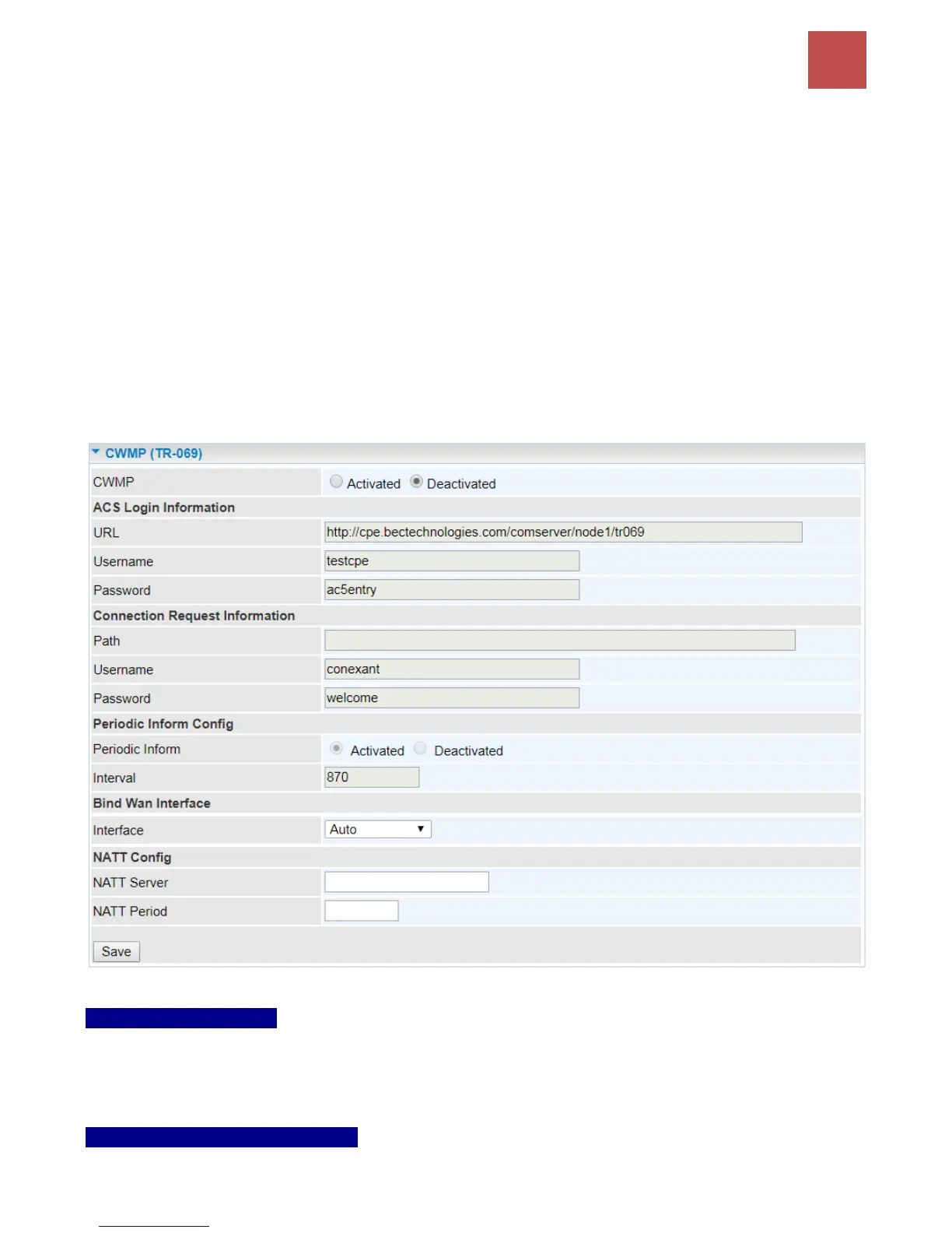 User Name: Specify the ACS User Name for ACS authentication to the connection from CPE.
