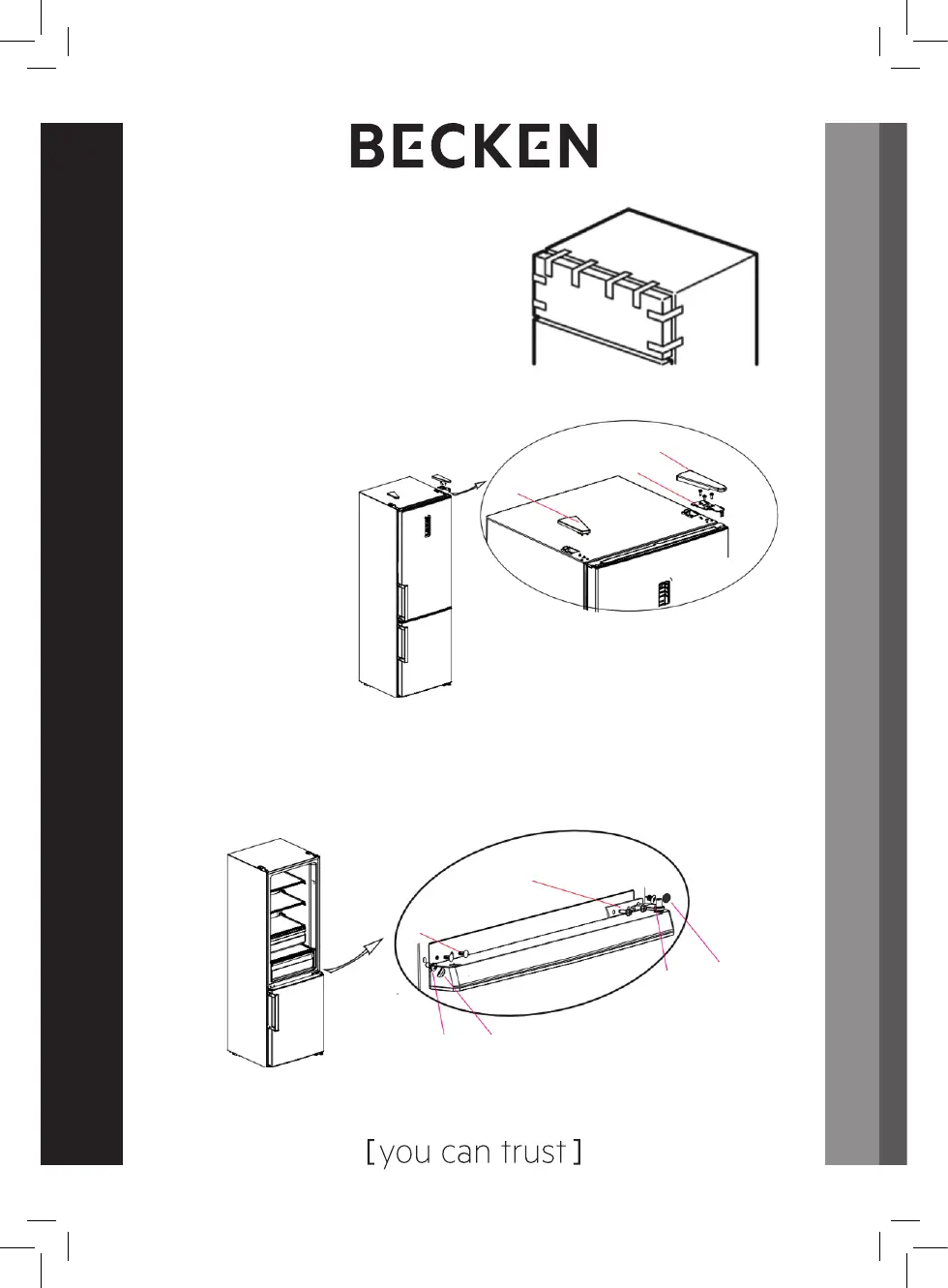 chamber door as well as middle hinge, screws, screw cover, sticker