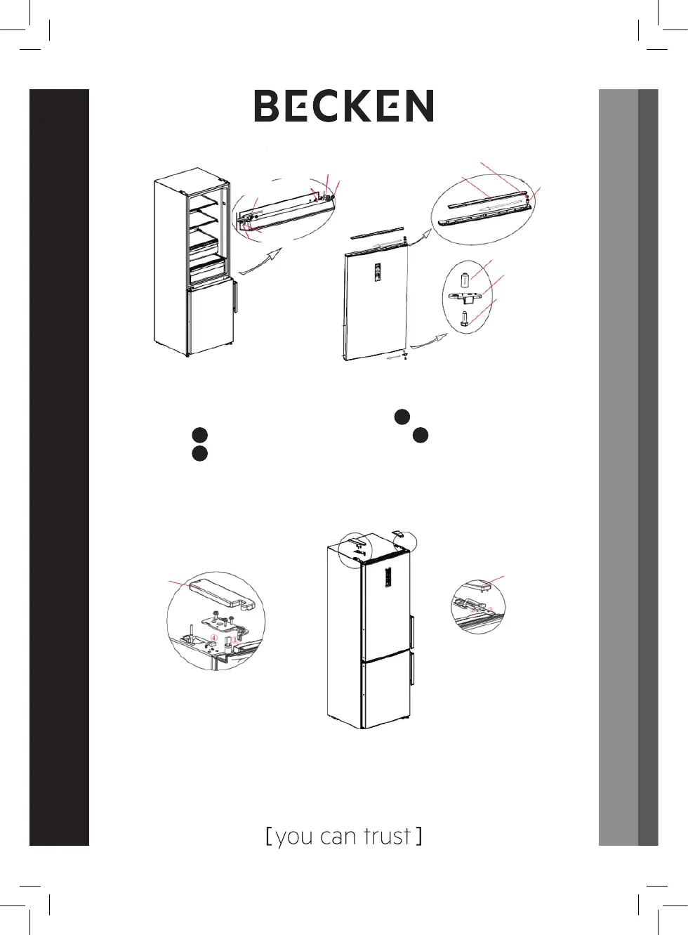 Mount the top hinge cover and hole cap. To assemble the handle,