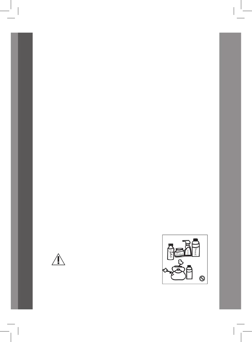 banana oil, etc.), boiling water, acid or alkaline items, which may