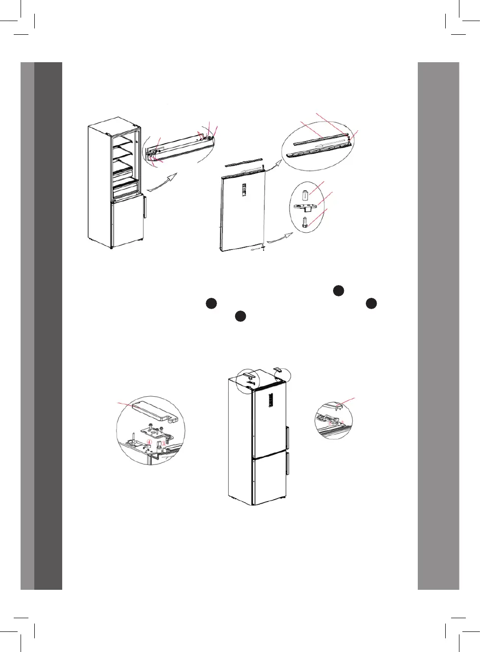 7) Coloque a porta do frigoríco na dobradiça central e monte a
