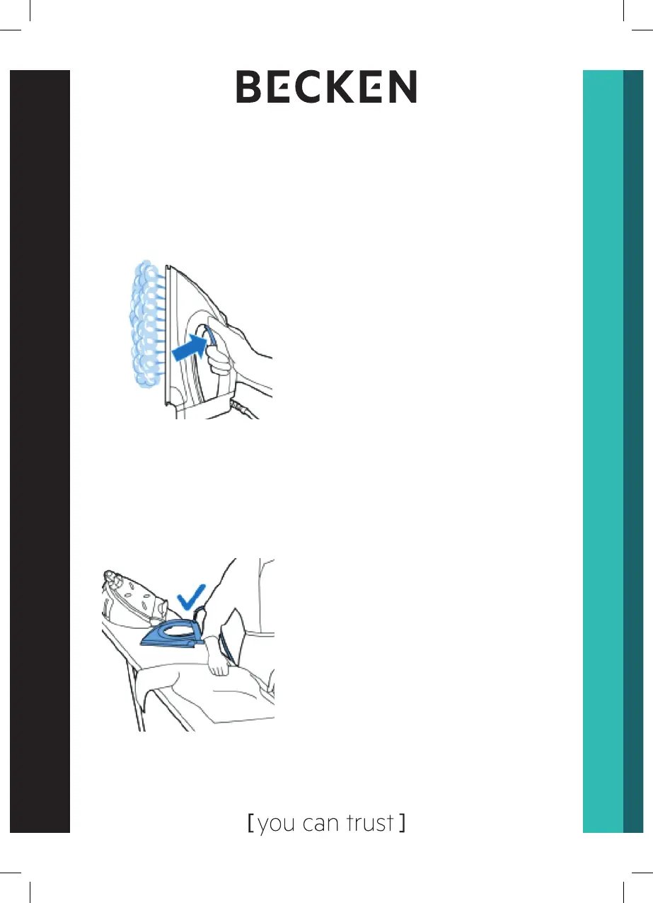 1. Hold the iron in a vertical position, press the steam trigger and touch