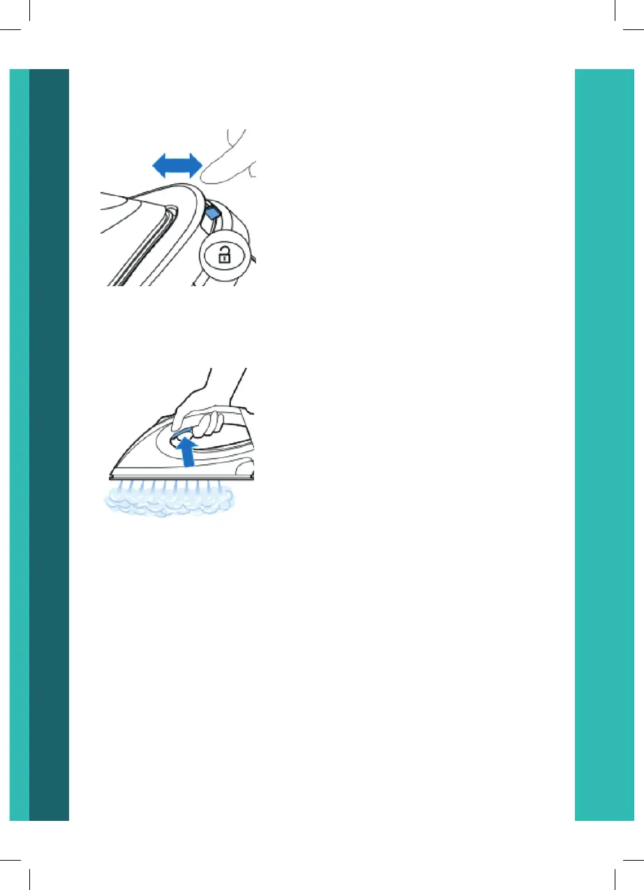 engomar. Mantenha o botão de vapor pressionado à medida que passa
