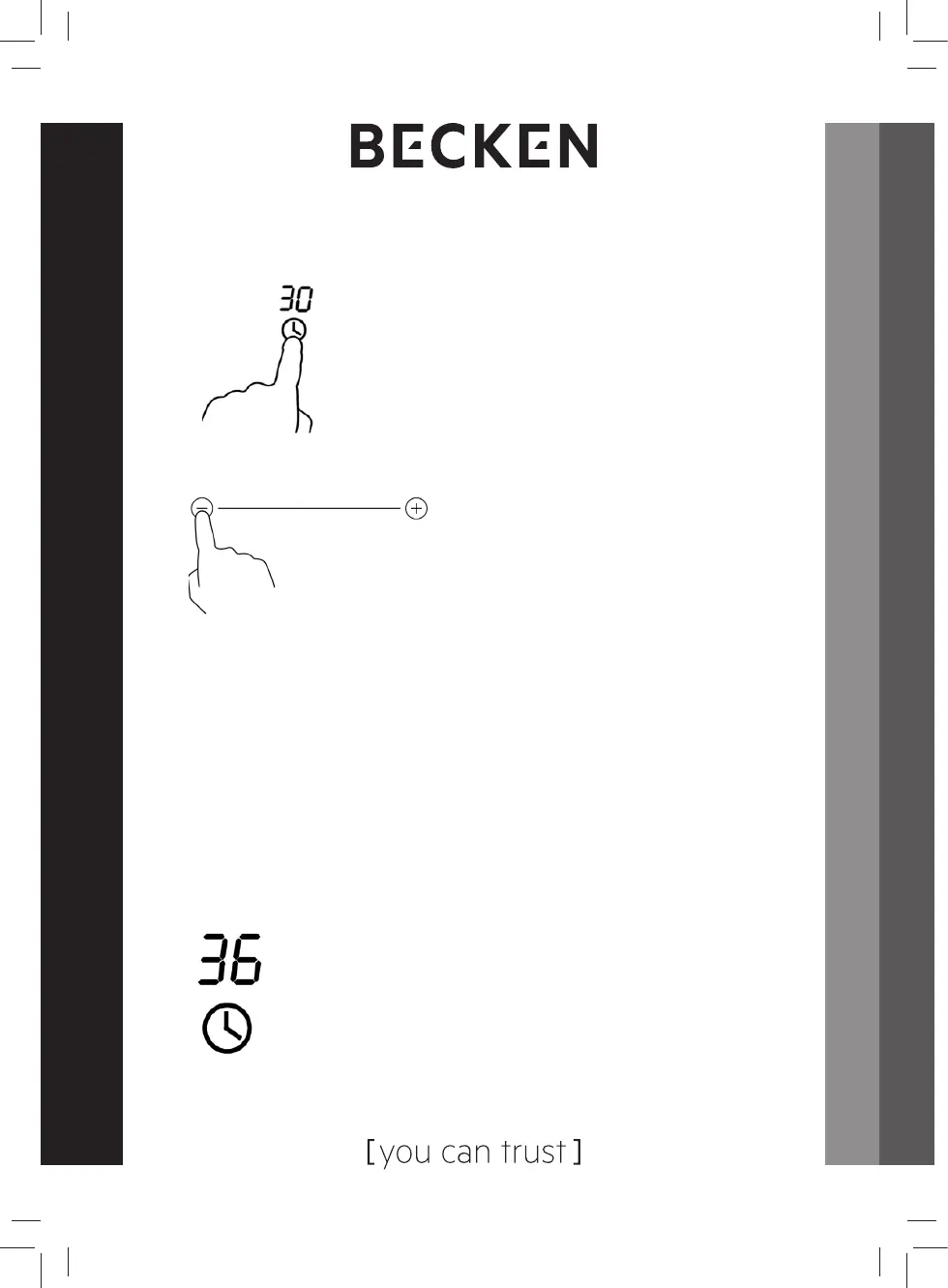 3. Set the time by touching the “-” or “+” control.