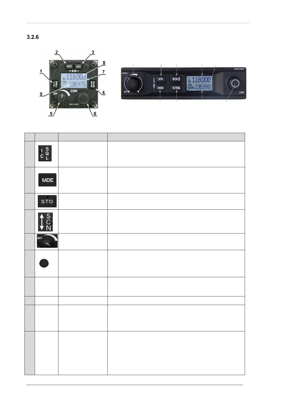 • "Short push" during normal operation = RX - SQL