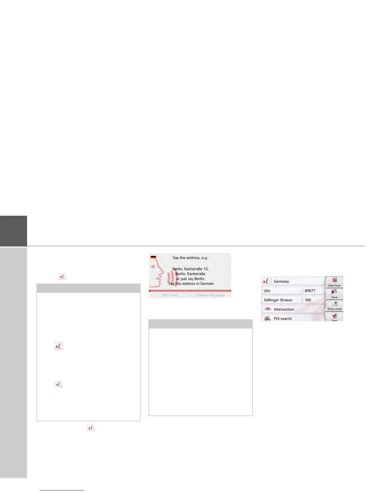 Entering address by speech (selected models)