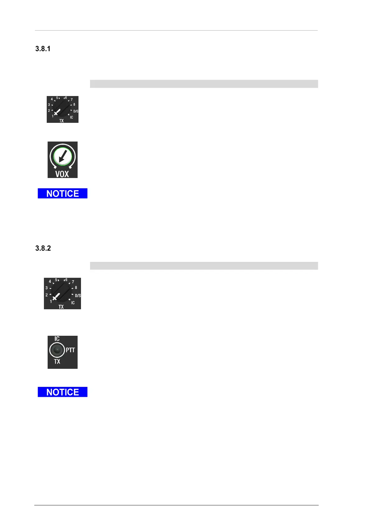 • PTT switch position PTT-TX: Is used to set the transmitter in transmit