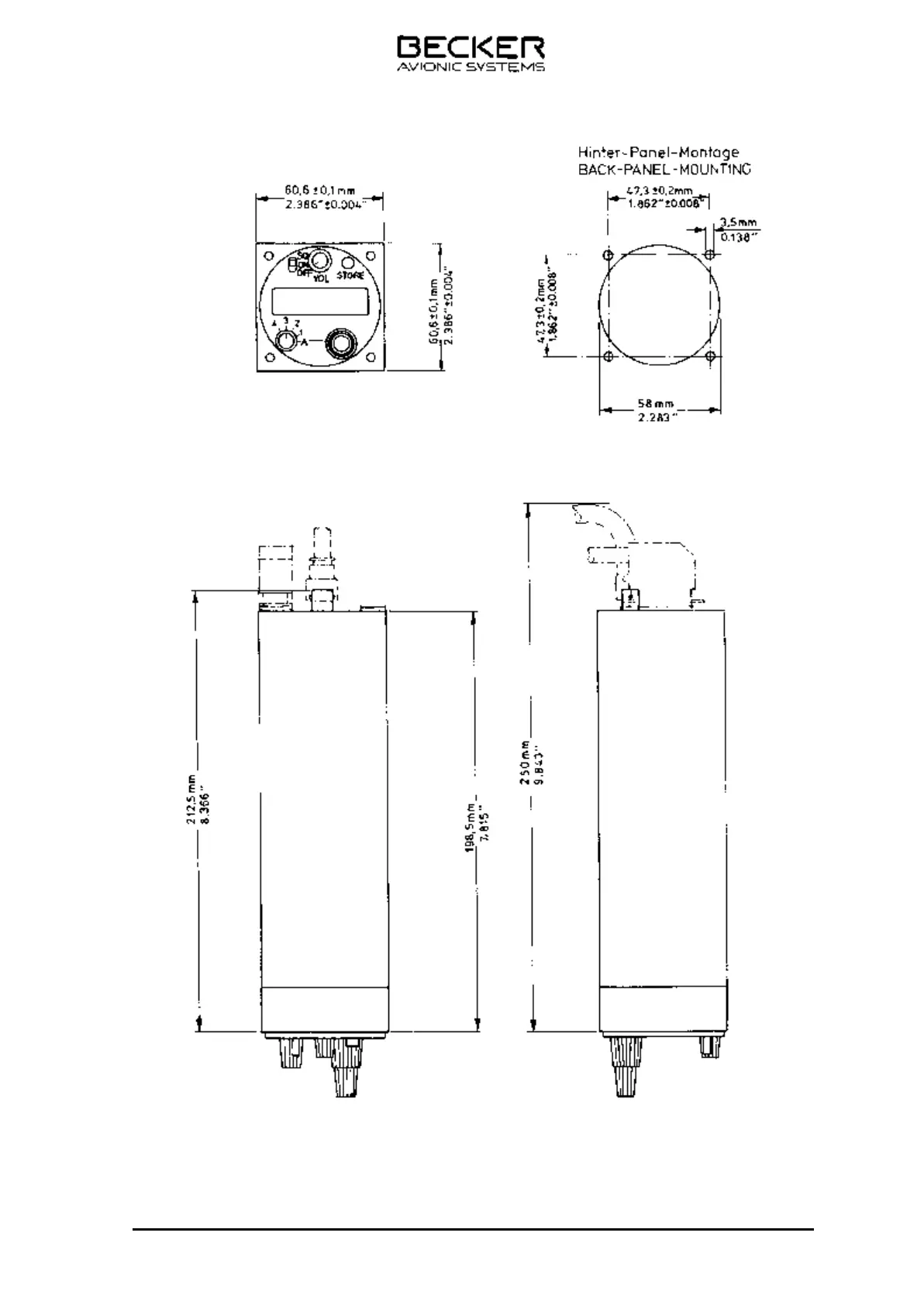 Fig. 2-4 Dimensions of VHF transceiver