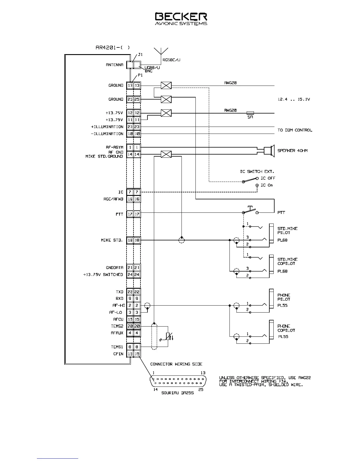 Becker AR 4201 - Interwiring of the VHF Transceiver with Standard Mike