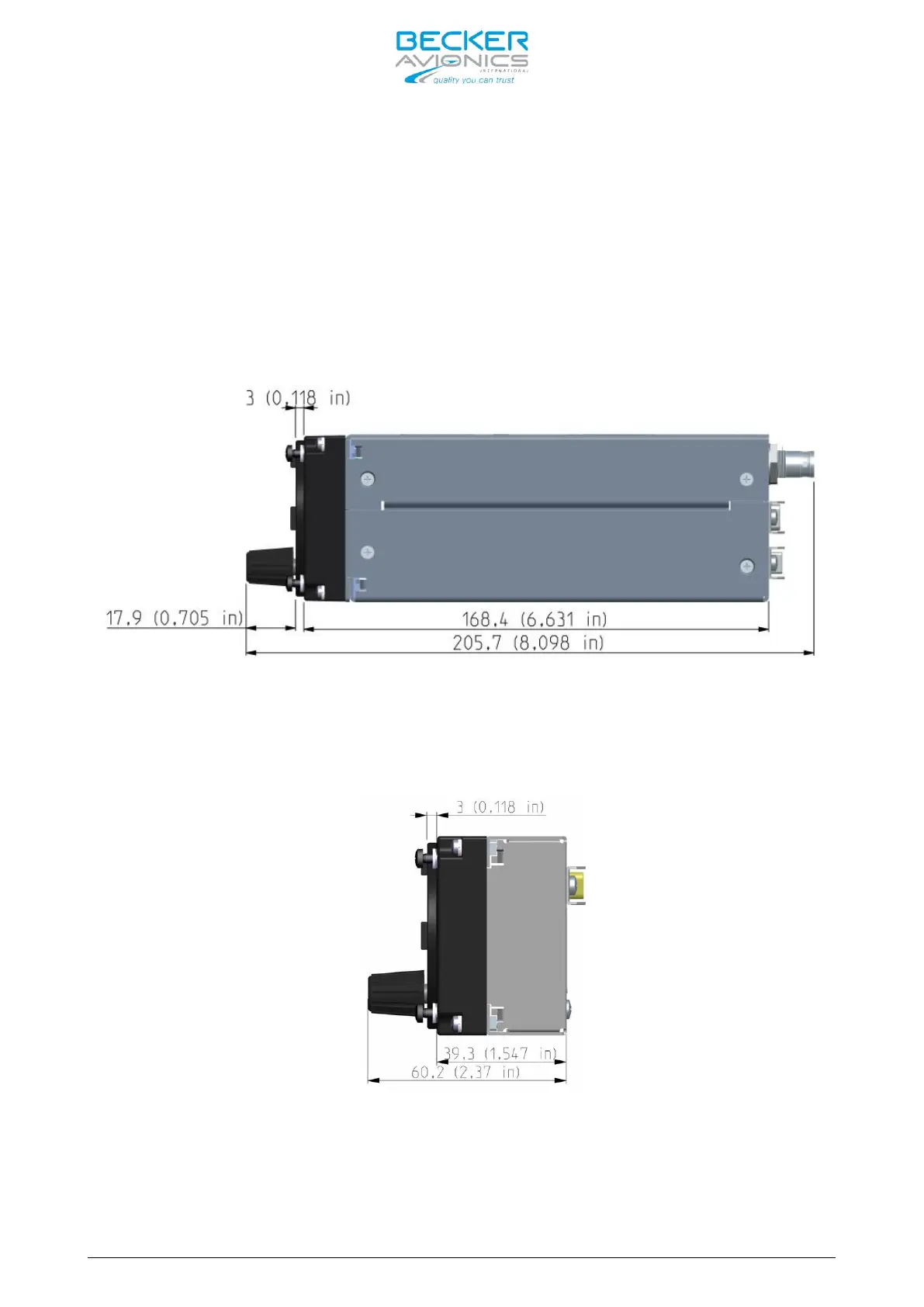 Figure 2-1: AR6201 side view, dimensions in mm and (inches)